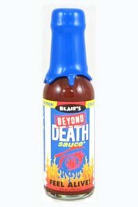 Blair's Beyond Death Hot Sauce. The mad man is at it again with this collector's edition Beyond Death that is so hot he had to seal it with his trademark wax seal. This formula was originally made in 1992, but it has been brought back from the dead with this killer hot sauce. Use with extreme caution because it will hurt!!