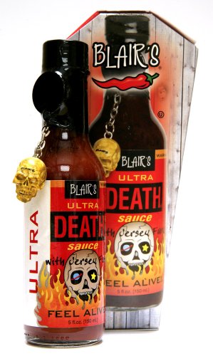 Born and Bred in the Garden State - Blair's Jersey Death Hot Sauce is making Jersey Feel Alive! Made with New Jersey's best tomatoes, this sauce is Blair's first tomato based hot sauce. Be warned this sauce contains ingredients 750 times hotter than a jalapeno chile. Use sparingly. Jersey Death should not be consumed without dilution. Made with the great Blair's Karma.