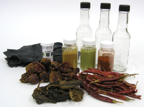 Making fresh homemade hot sauce from scratch is fun and easy to do in a few steps. You do not have to be a trained chef or a barbeque pit master to create your own recipes. The process of making your own sauce will teach you a lot about the sauces you buy and how the ingredients impact the final flavor. Once you have developed a few recipes, you can organize chili competitions with your friends, who can aim for the hottest or attempt to recreate your own favorite commercial brand. Ingredients for 7-10 recipes.This Kit Includes: 3 - 5oz Hot Sauce Bottles with Cap and Dripper Insert3 Pair of Black Nitrile Gloves1 oz. Whole Dried Habanero Chilies1 oz. Whole Dried Chipotle Chilies1 oz. Whole Dried De Arbol Chilies1 oz. Cayenne Powder1 oz. Jalapeno Powder1 oz. Aji Amarillo Powder1 oz Xanthan GumpH Paper 2.8-4.4