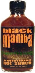 Black Mamba Extreme Venomous Hot Sauce, 2oz.: Black Mamba Venomous, A blend of Chocolate Habaneros (their heat rivals the Red Savina pepper) and a blend of extracts that make this one of the HOTTEST sauces! Beware the bite of the Black Mamba! The new hottest sauce from Cajohn's. Made with flavorful chocolate habanero peppers and several types of capsaicin extracts, it's Bite is deadly! Although it hasn't been tested, it's reportedly said to approach several million scoville units. You be the judge!